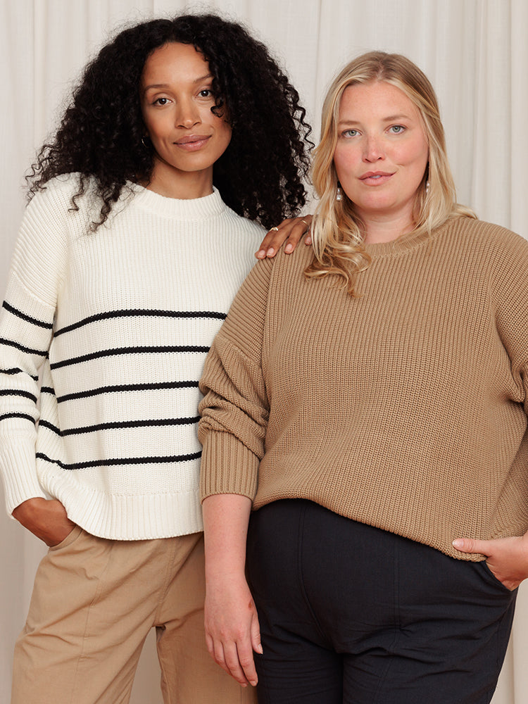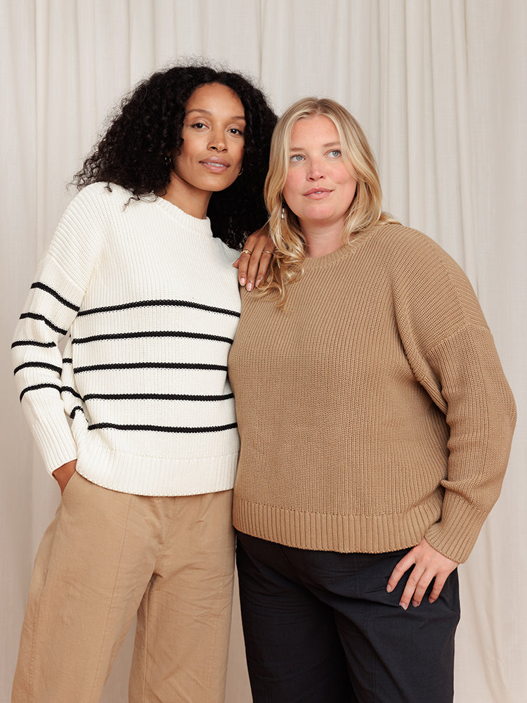Introducing the Shelter Cotton Crewneck, an homage to timeless East Coast style, drawing from our best-selling Shelter Cardigan. It's not just a purchase – but an investment you’ll wear forever. Expertly crafted with a premium cotton knit, this vintage-inspired gem features a perfected slouchy, relaxed fit for utmost comfort. Available in Black, Coffee, and Birch with Black Stripes.
